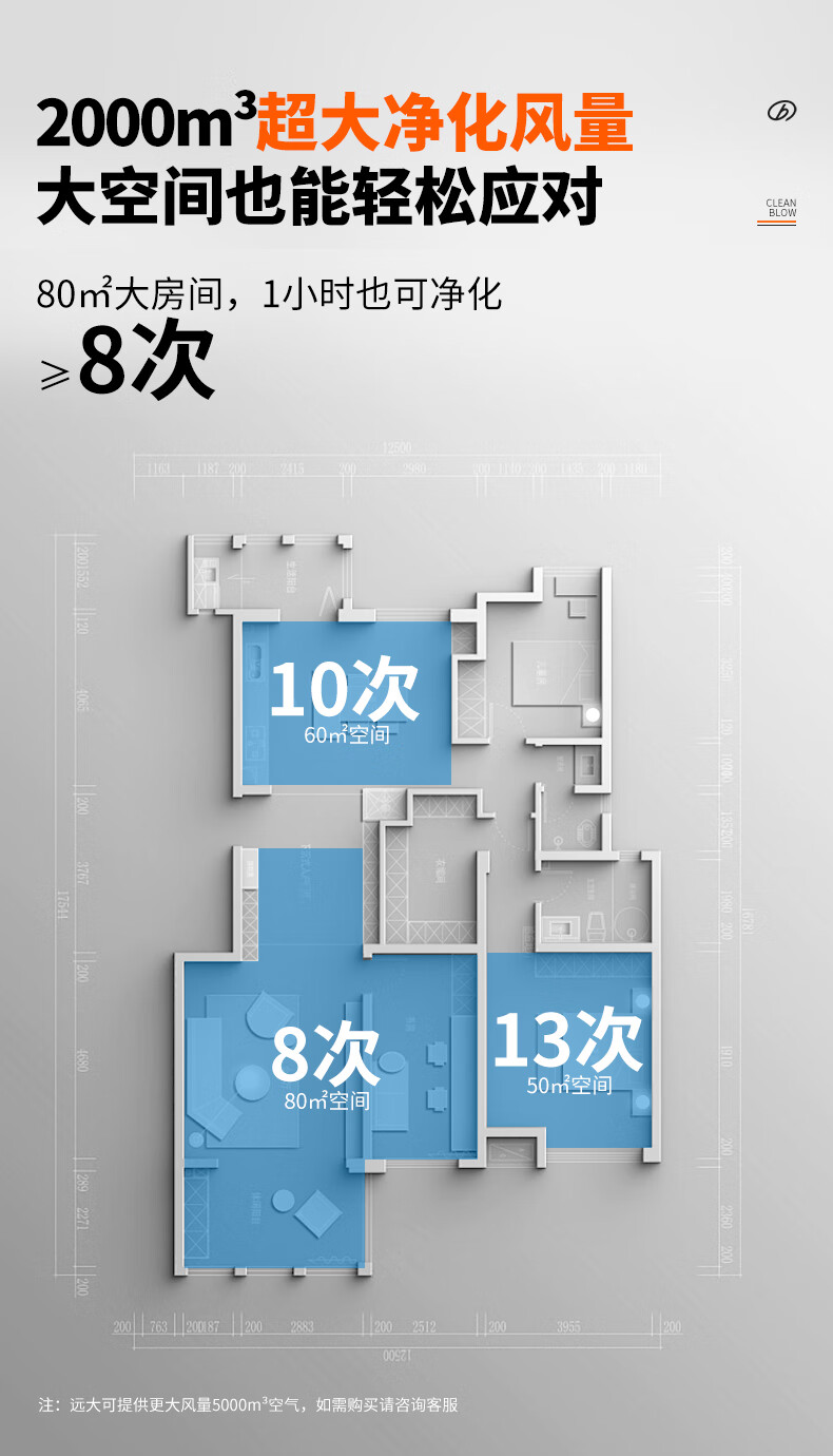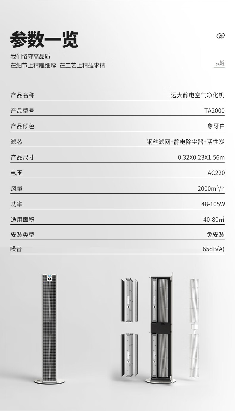 远大 BROAD 无耗材静电空气净化器 除霾除菌除异味 家用大平层别墅客厅办公室商用大空间TA2000