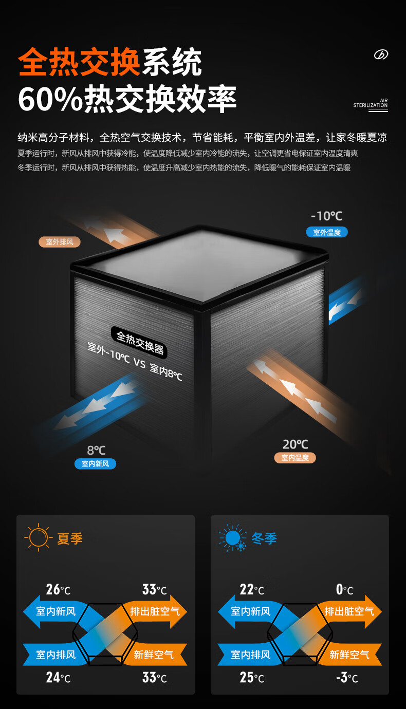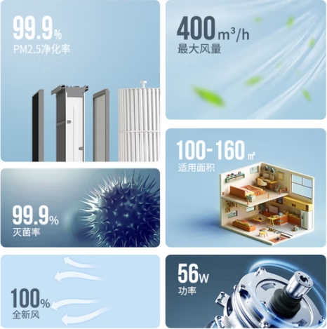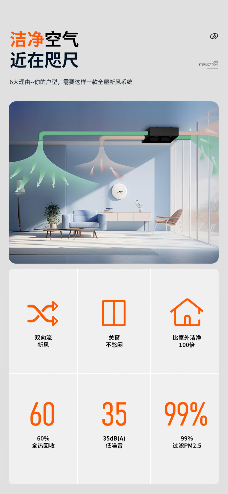 远大(BROAD)家用全屋中央吊顶新风系统 空气净化除尘除醛新风机双向流通风换气全热交换 空调伴侣EMD550