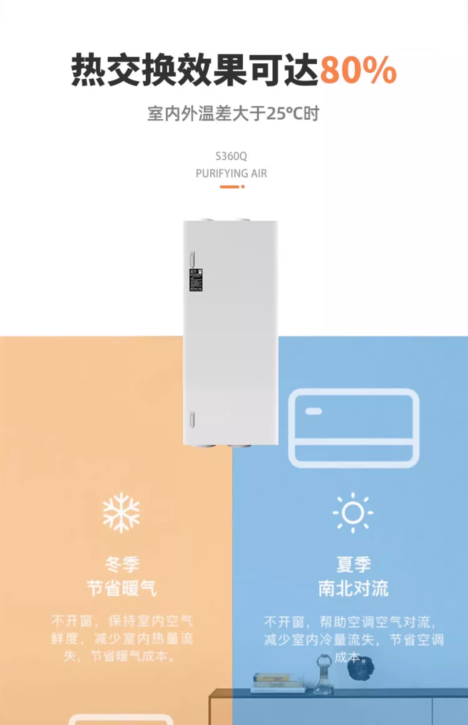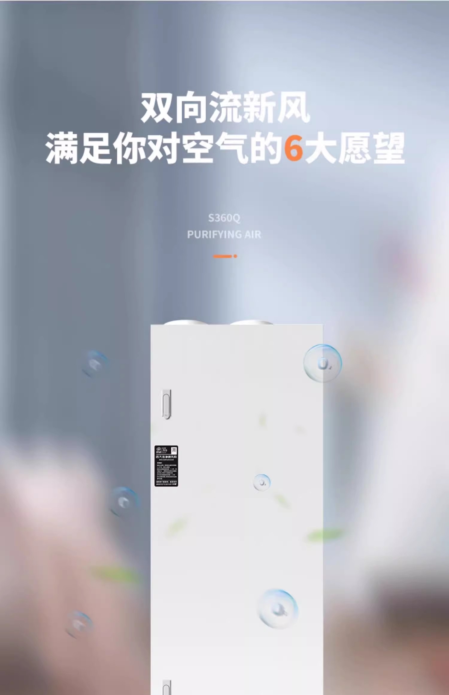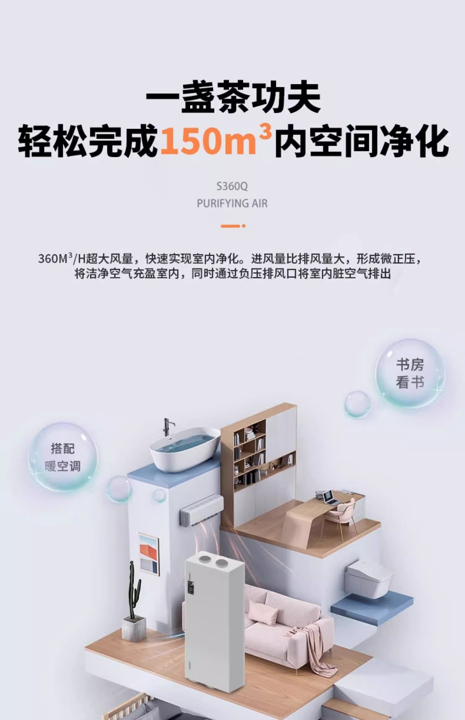 远大(BROAD)【官方直营】远大新风系统S360Q全屋中央新风机双向流家用通风换气热交换吊顶除醛灭菌S360Q(150平内适用)