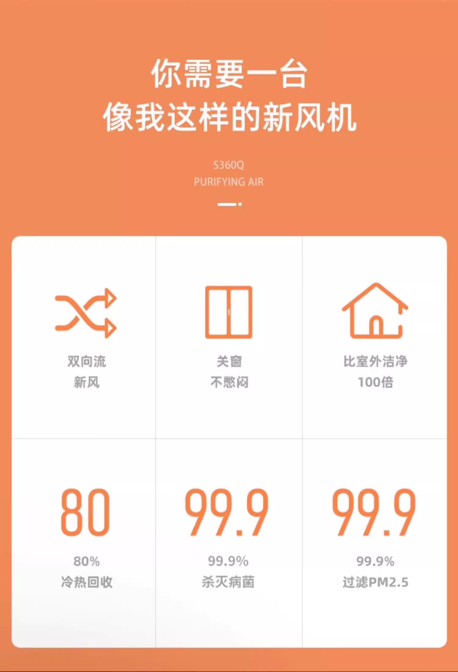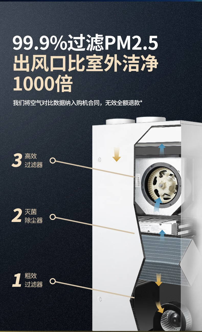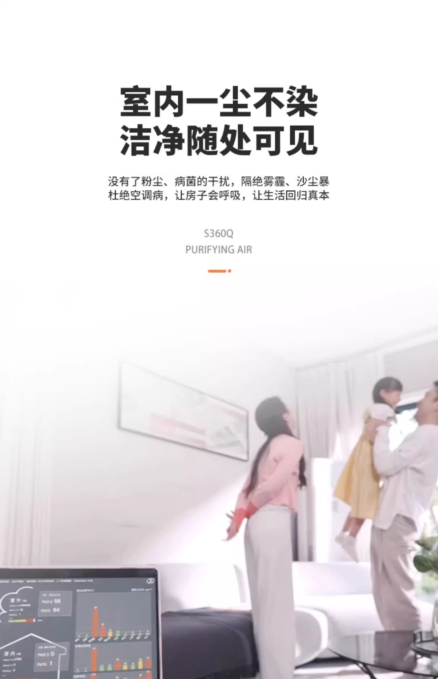 远大(BROAD)【官方直营】远大新风系统S360Q全屋中央新风机双向流家用通风换气热交换吊顶除醛灭菌S360Q(150平内适用)