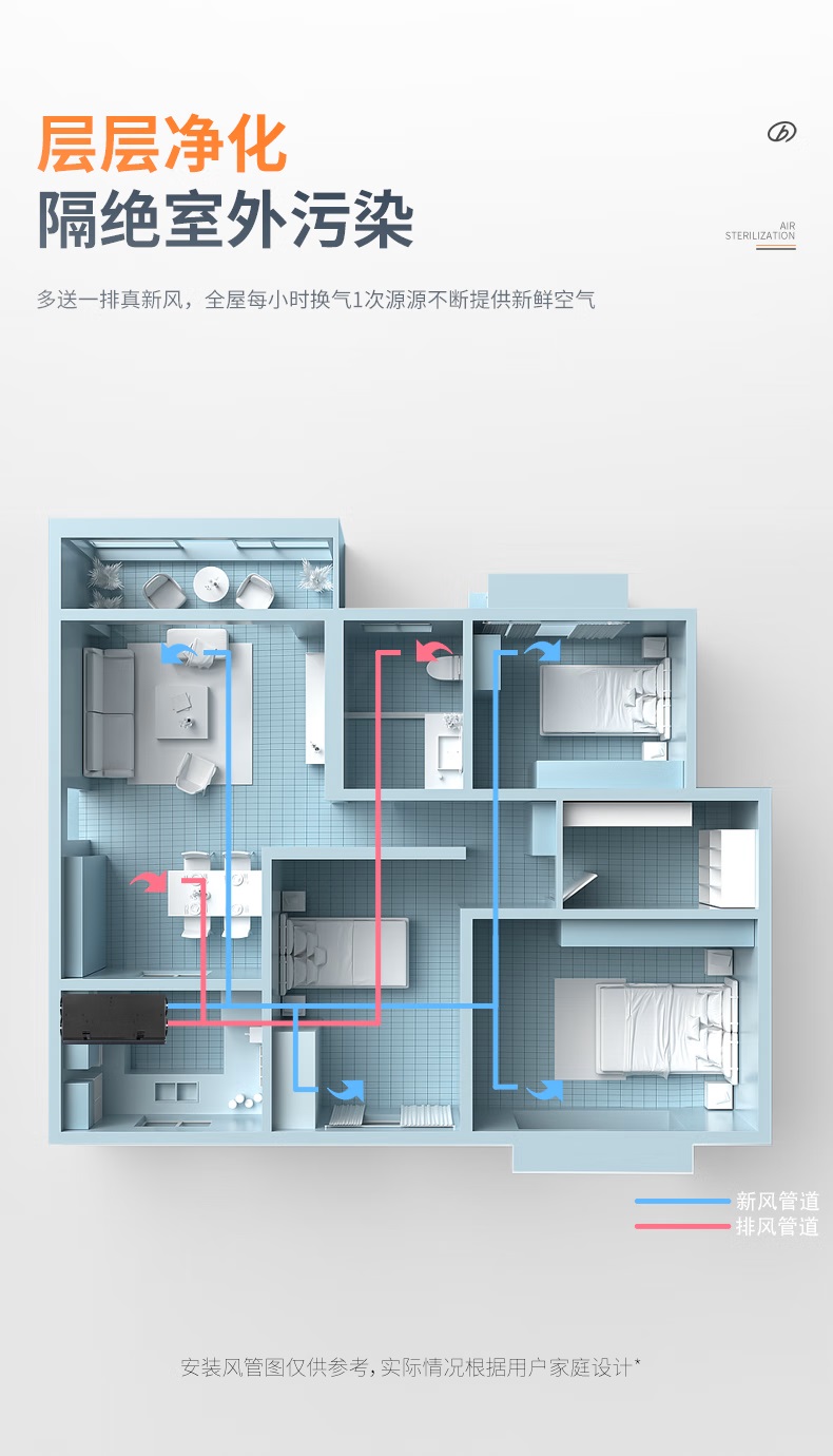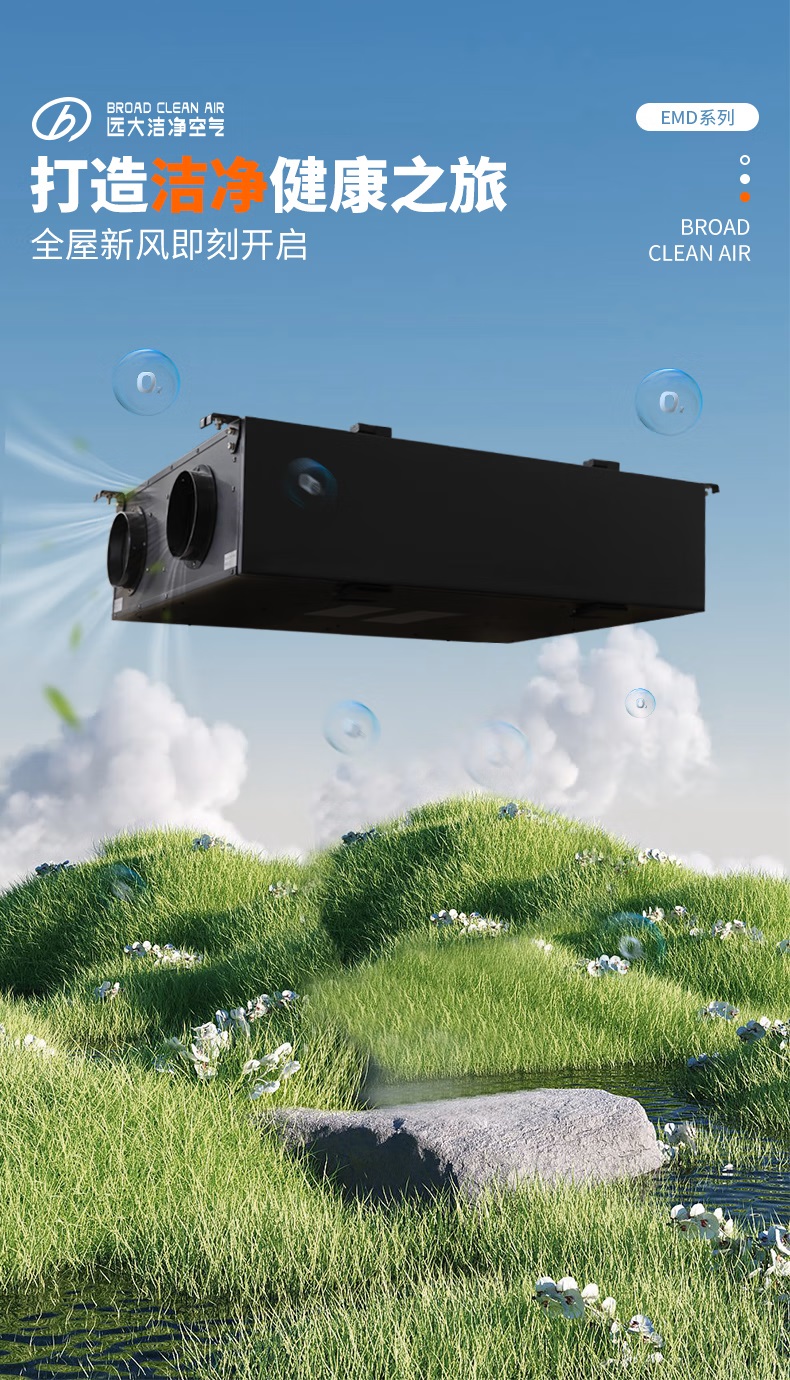远大(BROAD)【官方直营】双向流中央新风系统全屋净化除甲醛除霾灭菌吊顶式新风机EMD300(含PE管标准安装)
